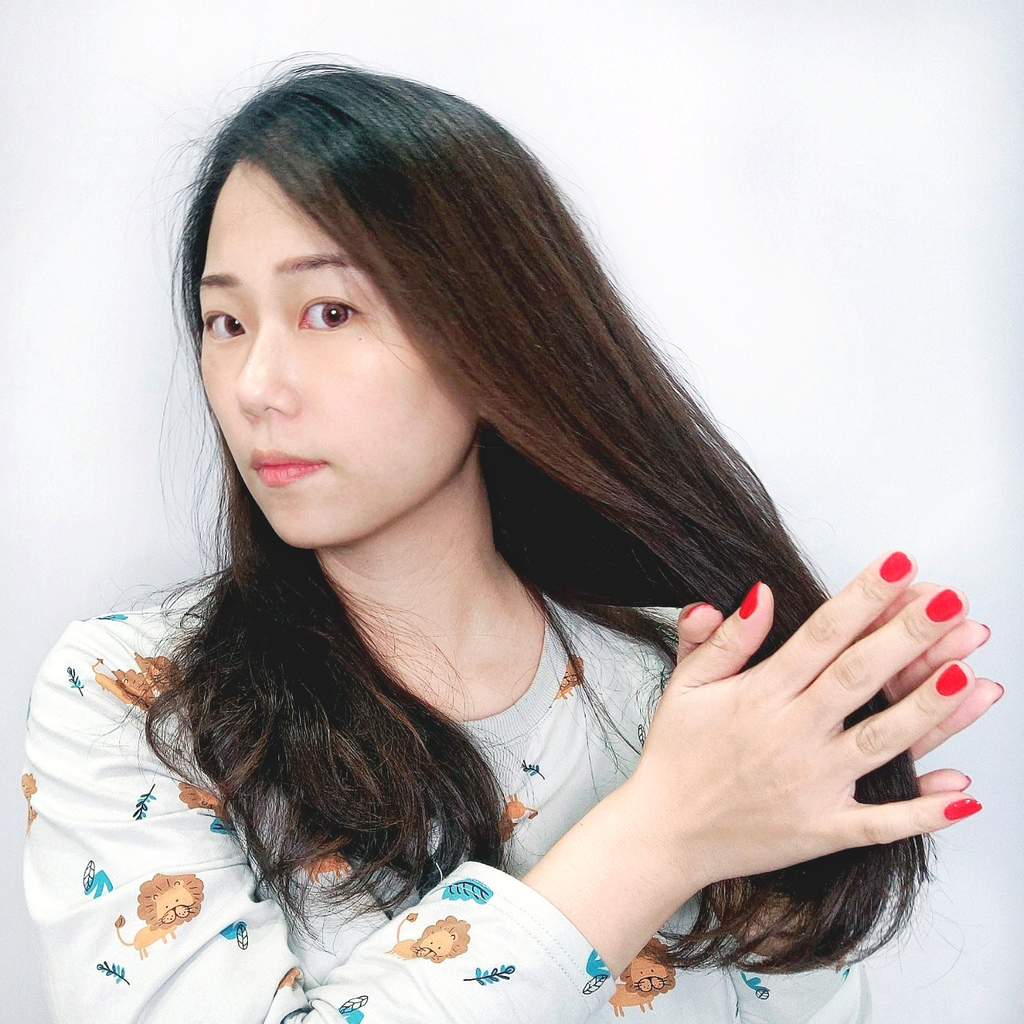 看得出抹完護髮油的頭髮變得更加柔潤有光澤了